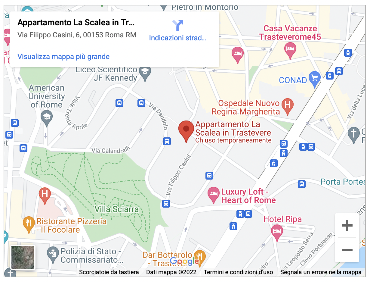 Per chi arriva in aereo: treno da l’aereoporto Leonardo Da Vinci di Fiumicino passa per la Stazione di Roma Trastevere (1,7 Km dall’appartamento). Successivamente prendere linea TRAM 8 e scendere alla fermata di Viale Trastevere – Ministero Pubblica Istruzione (450m dall’appartamento).